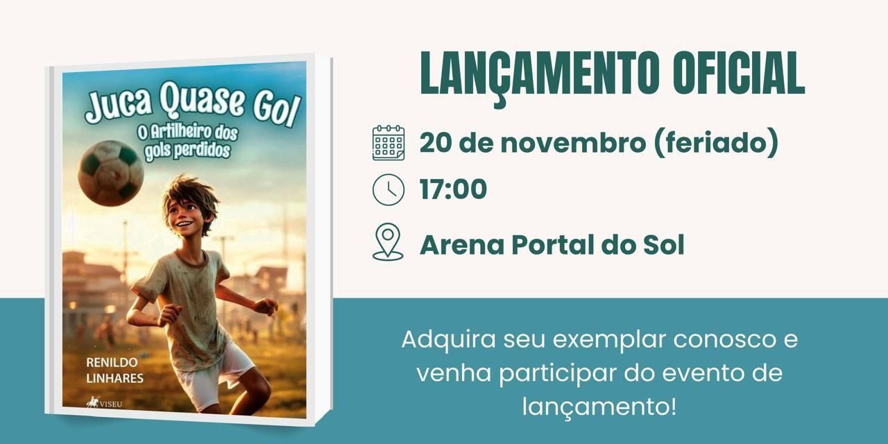 O livro “Juca Quase Gol – O Artilheiro dos Gols Perdidos” de autoria do professor Renildo Linhares será lançado nesta quinta-feira (21). O evento ocorrerá às 17h00, na Arena Portal do Sol, próximo ao Altiplano Cabo Branco, local que disponibilizará para a venda.